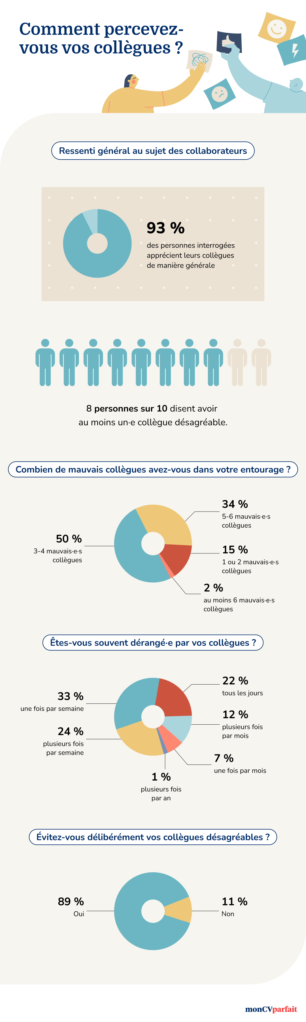 - 34 % disent travailler avec cinq ou six collaborateurs désagréables.